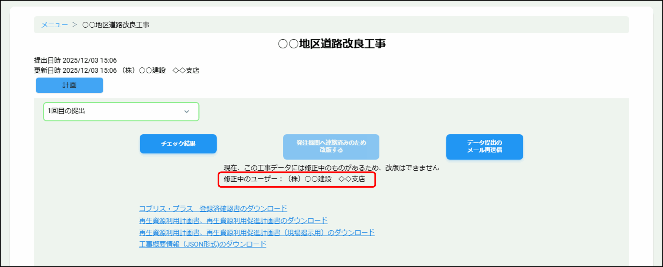 工事データを受発注者のいずれかが修正している場合に、修正中のユーザーを表示するようにしました。